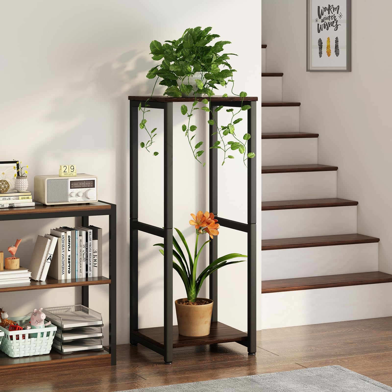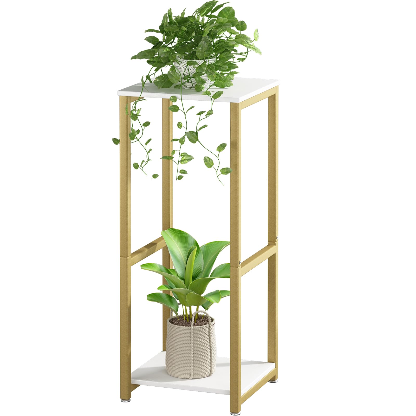 Linzinar Plant Stand Indoor Corner Tall 2 Tier Metal Modern Flower Storage Plant Shelf